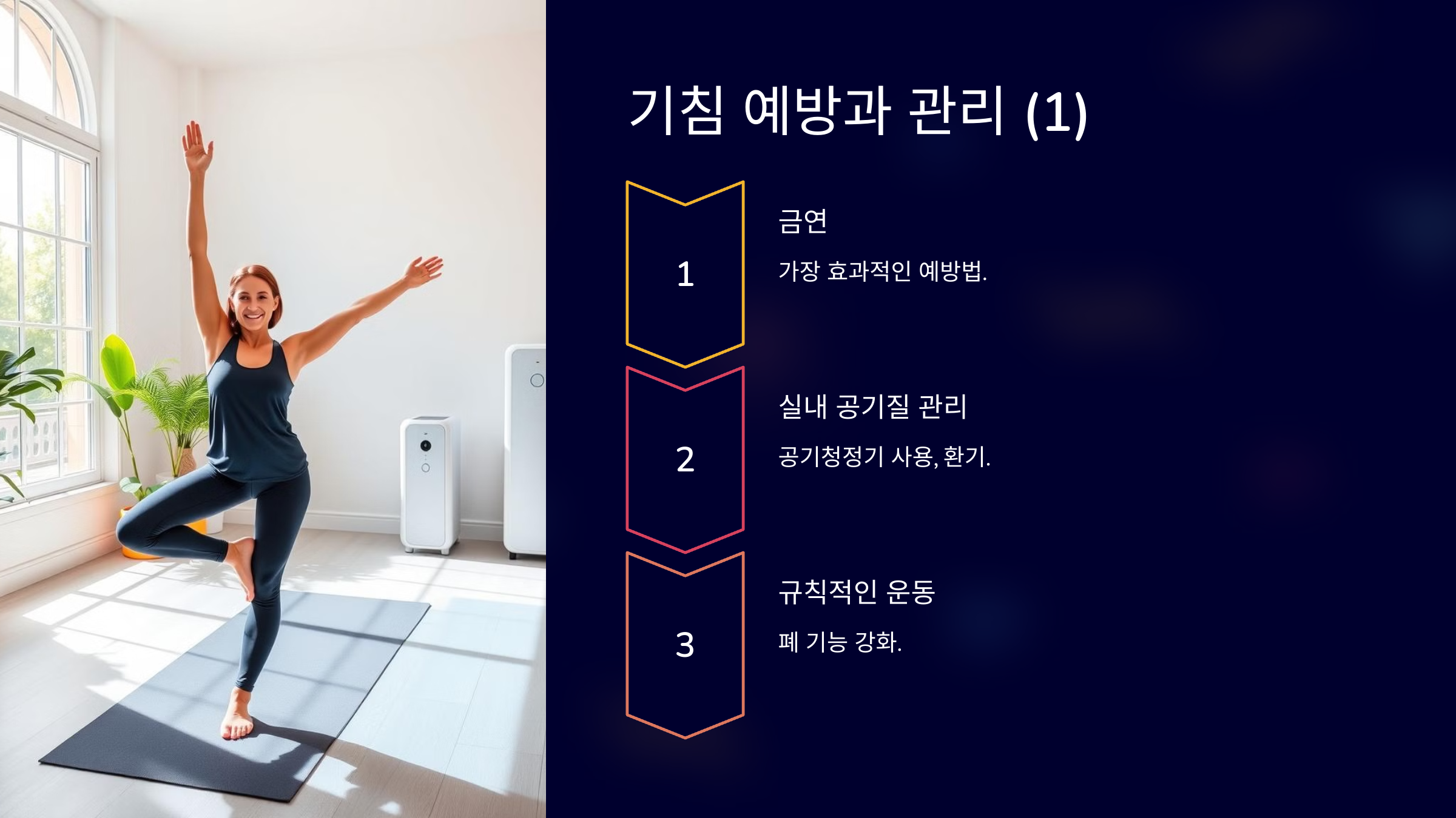 - 실내 공기질 관리: 공기청정기 사용, 환기
