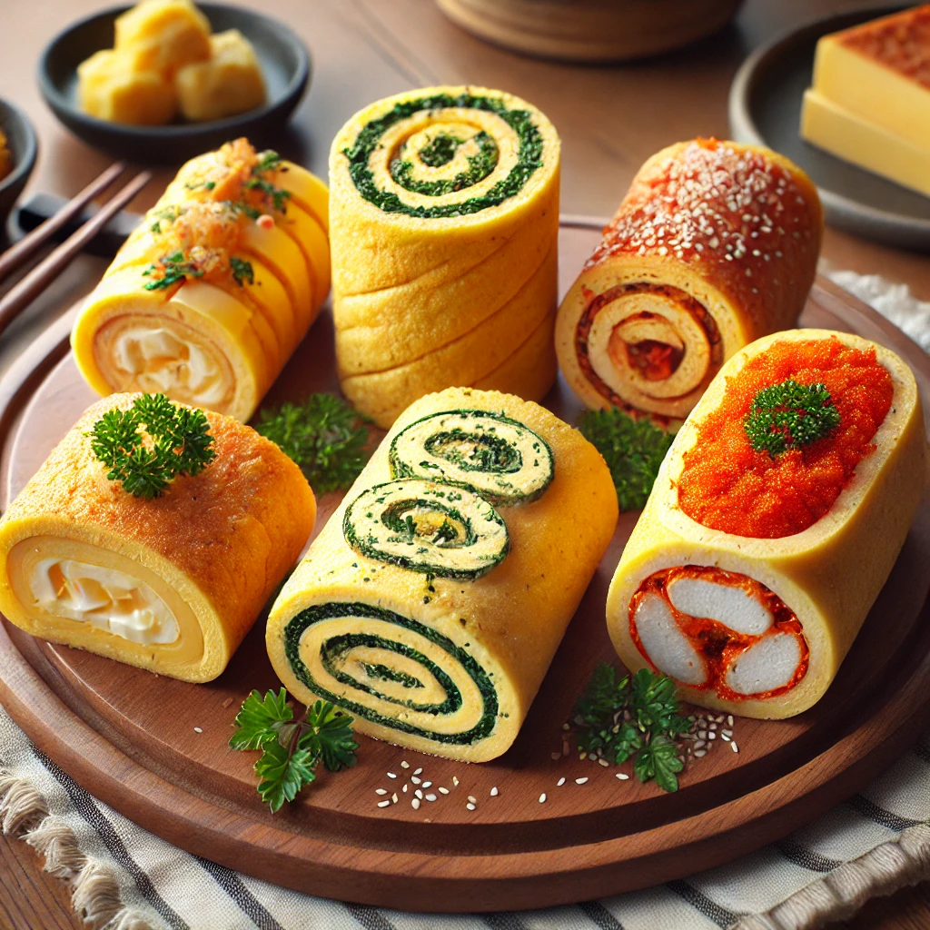계란말이는 기본 버전 외에도 다양한 변형이 가능합니다. 여기 몇 가지 아이디어를 소개합니다: