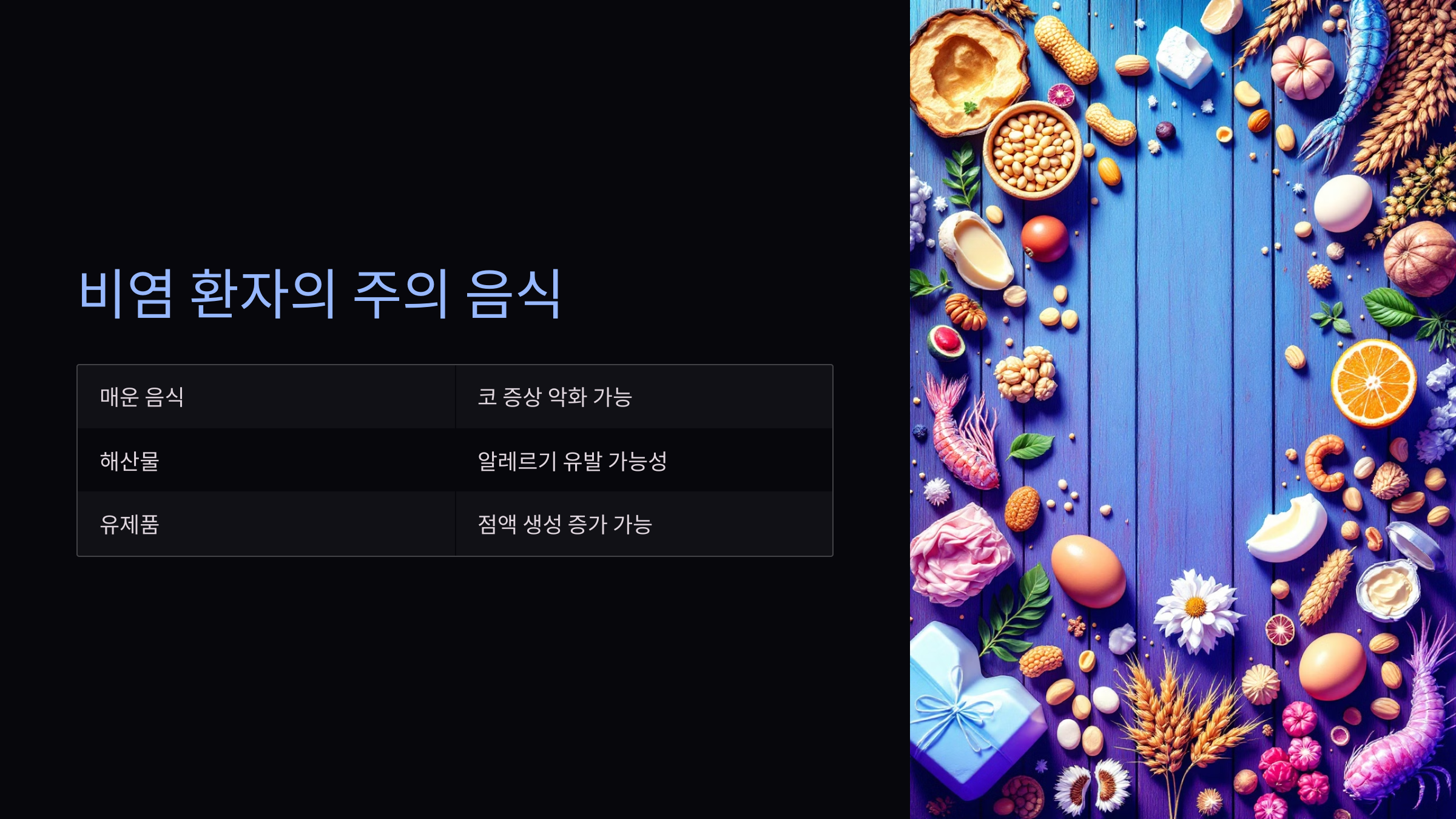 5. 비염 환자가 주의해야 할 음식은 무엇인가요?