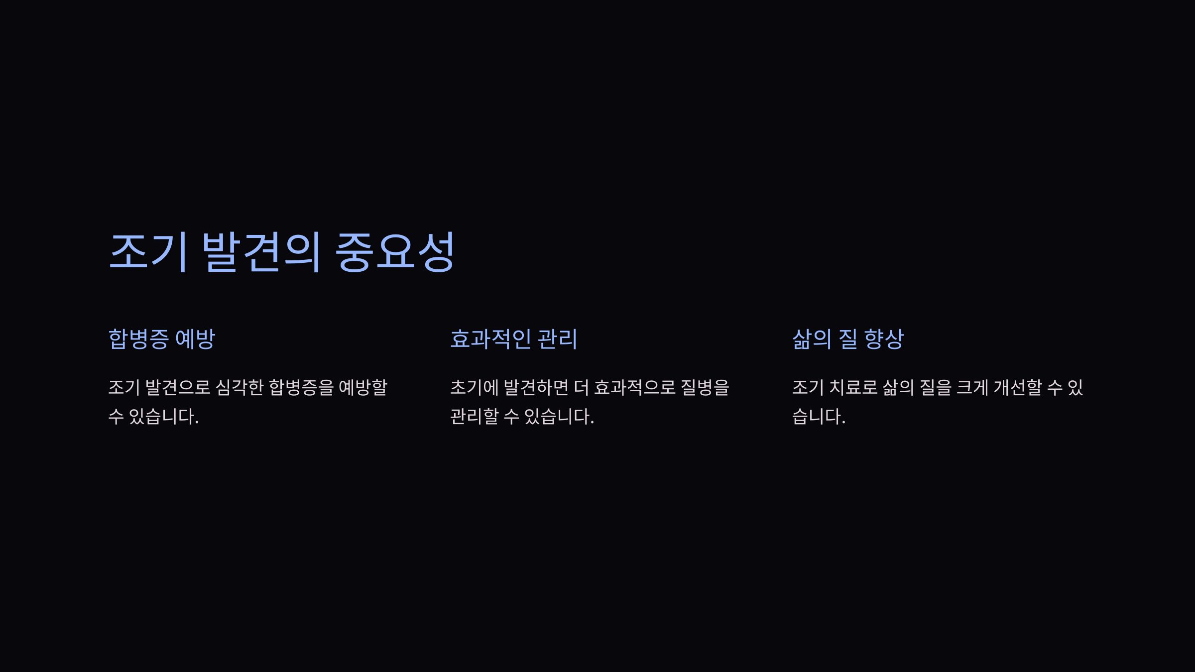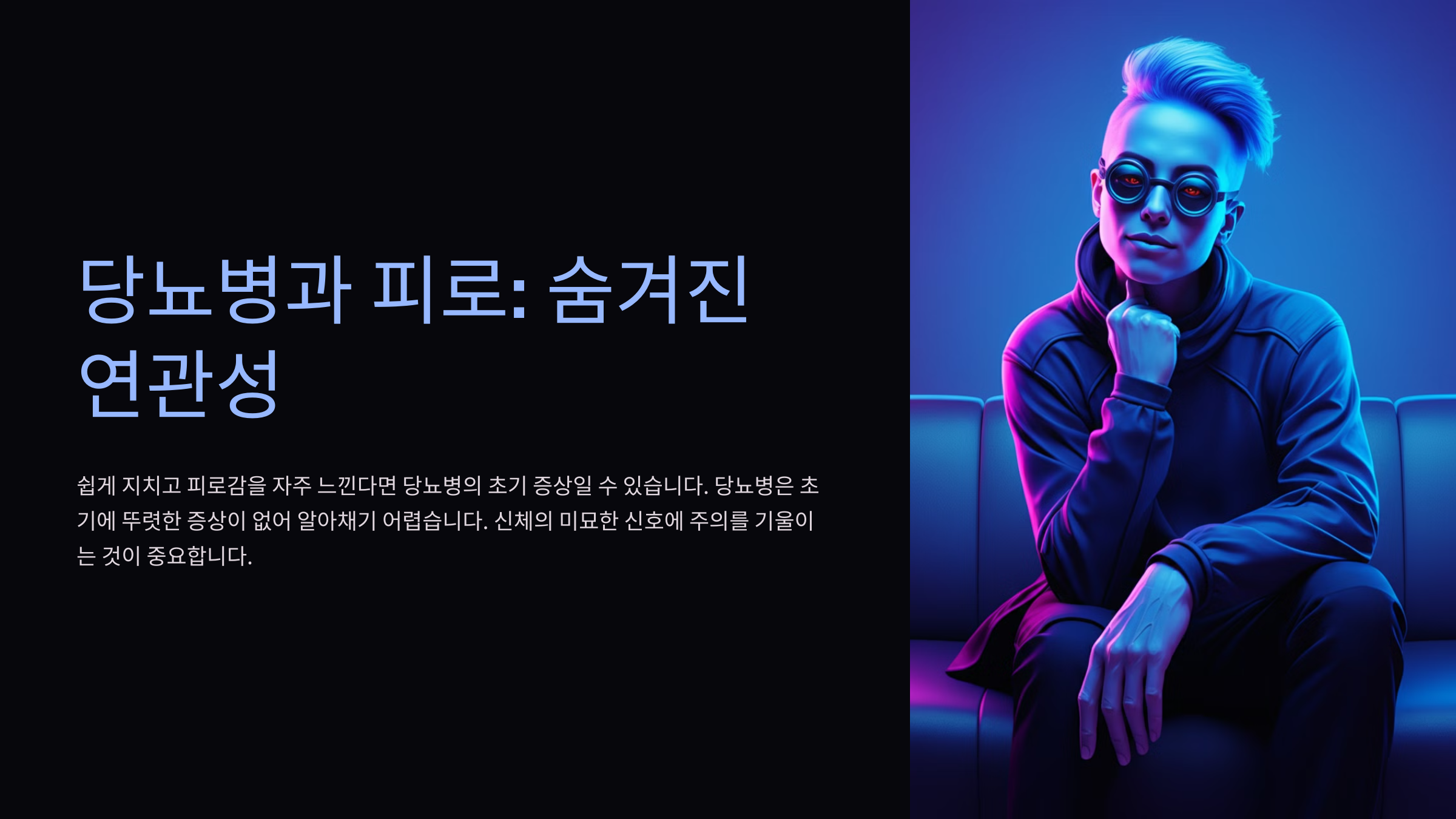 피로와 같은 작은 증상도 질병의 신호일 수 있습니다. 특히 당뇨병은 조기 진단이 중요하기 때문에, 생활 속에서 피로와 기타 증상들을 잘 체크하고 의심되는 경우 전문가의 도움을 받는 것이 좋습니다.