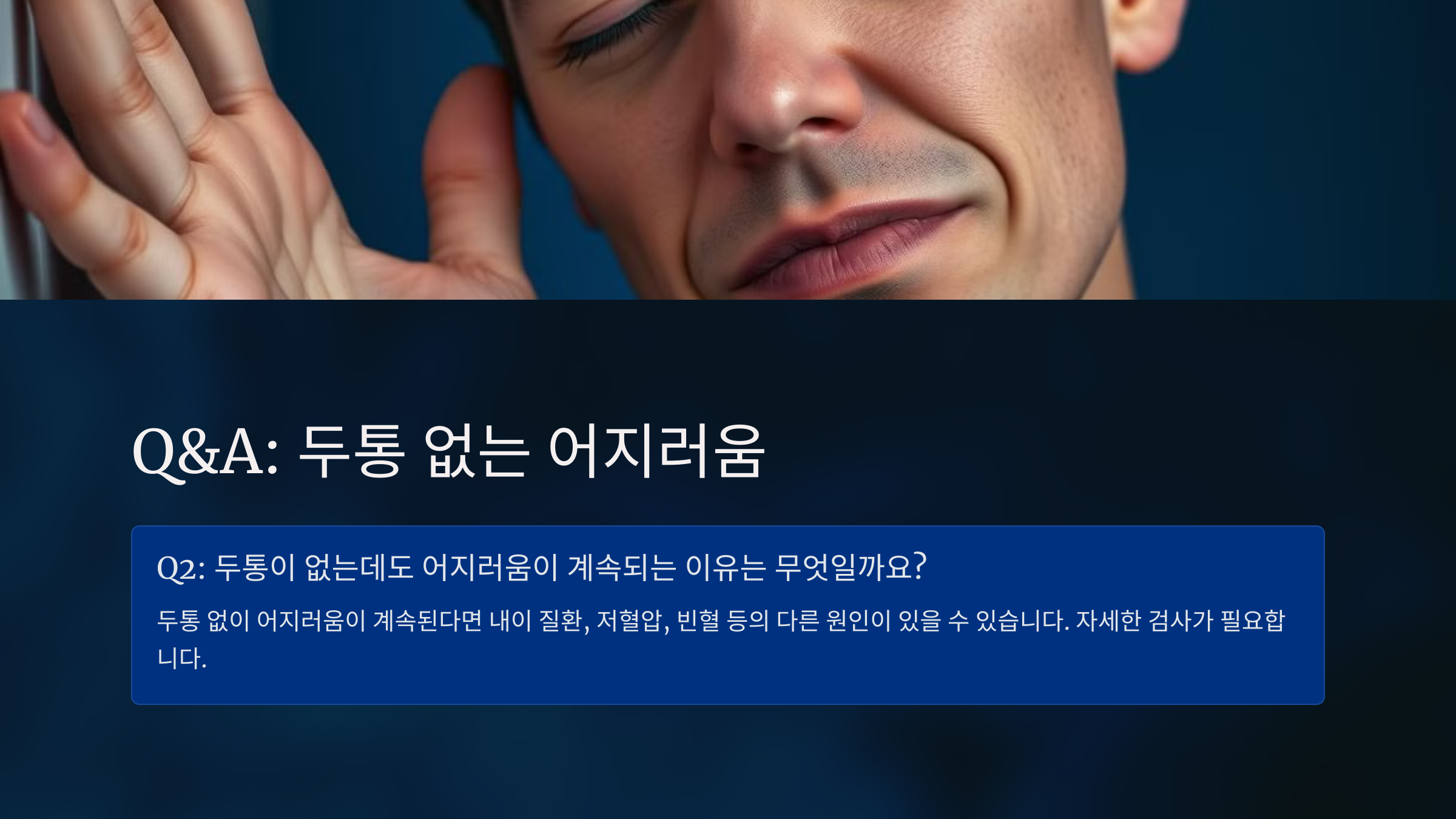 Q2: 두통이 없는데도 어지러움이 계속되는 이유는 무엇일까요?