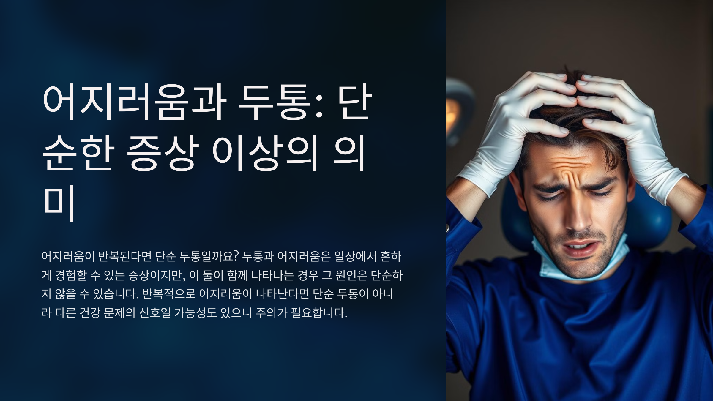 어지러움이 반복된다면 단순한 두통일 수도 있지만, 다른 신체적이나 신경학적인 문제가 있을 수도 있습니다. 증상이 계속된다면 정확한 진단을 위해 병원을 방문하는 것이 가장 안전합니다.