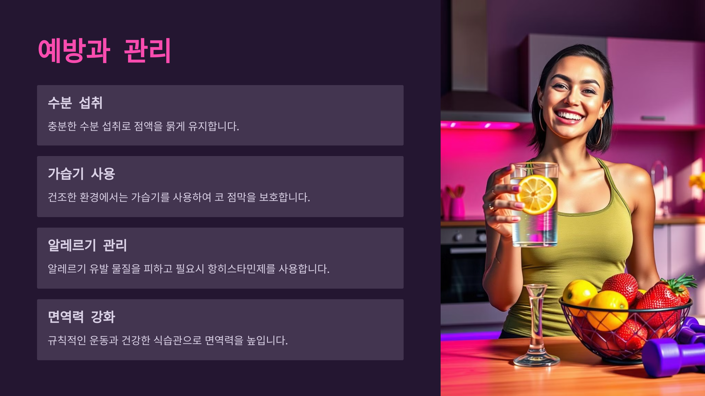 부비동염이나 기타 원인으로 인한 코막힘과 두통을 예방하려면, 평소 생활습관 관리가 중요합니다.