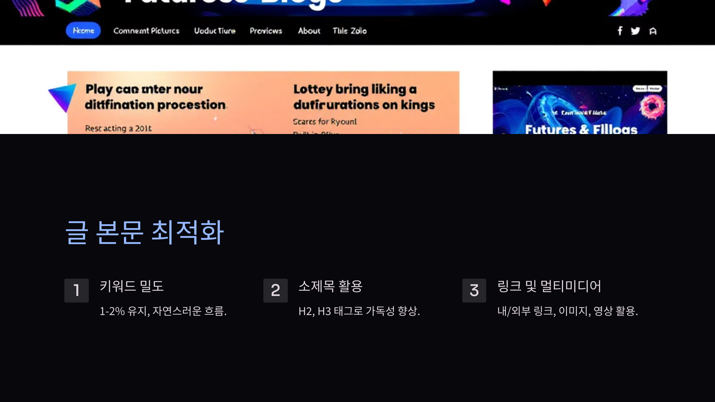 • 소제목 활용: 본문을 적절한 소제목(H2, H3)으로 구분하여 읽기 쉽게 만드세요.