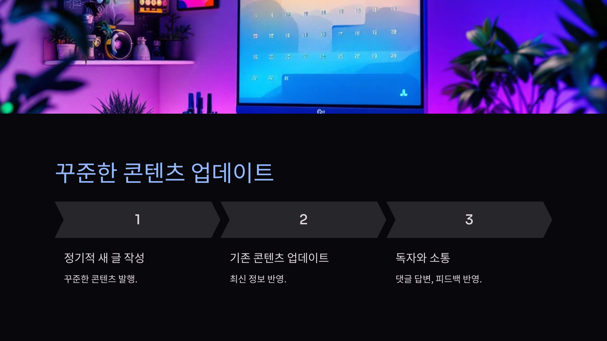 • 독자와 소통: 댓글에 적극적으로 답변하고, 피드백을 반영하여 블로그를 개선하세요.
