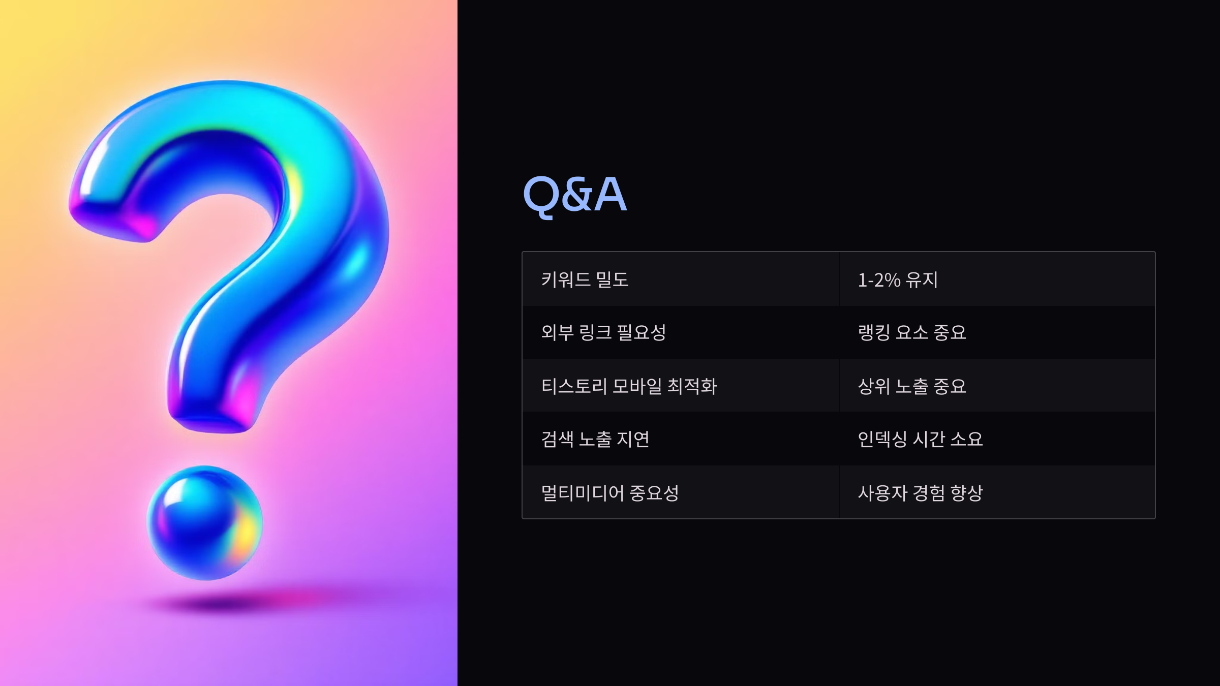 • 멀티미디어 요소 활용: 이미지, 동영상, 인포그래픽 등을 사용해 독자의 흥미를 끌고, 체류 시간을 늘릴 수 있습니다.