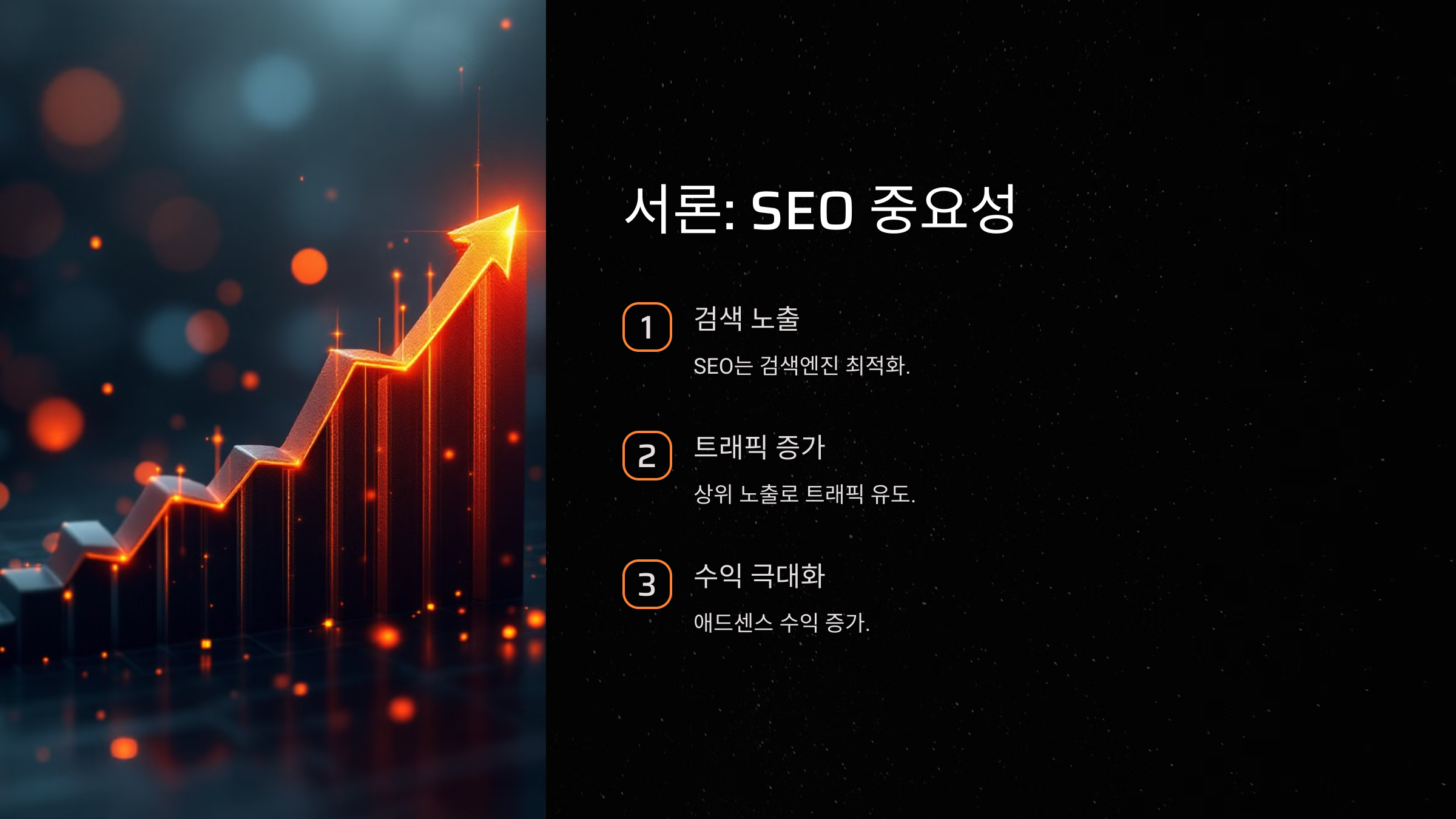 SEO는 블로그의 콘텐츠를 검색엔진이 쉽게 찾아내고, 적절한 키워드를 통해 상위 노출될 수 있도록 도와주는 일련의 최적화 작업을 의미합니다. 구글과 네이버 같은 검색 엔진에서 상위에 노출되면 블로그 트래픽이 자연스럽게 증가하며, 애드센스 수익 극대화에도 기여할 수 있습니다. 티스토리 블로그는 네이버 블로그에 비해 SEO 작업이 더욱 중요하기 때문에 이를 잘 활용해야 합니다.