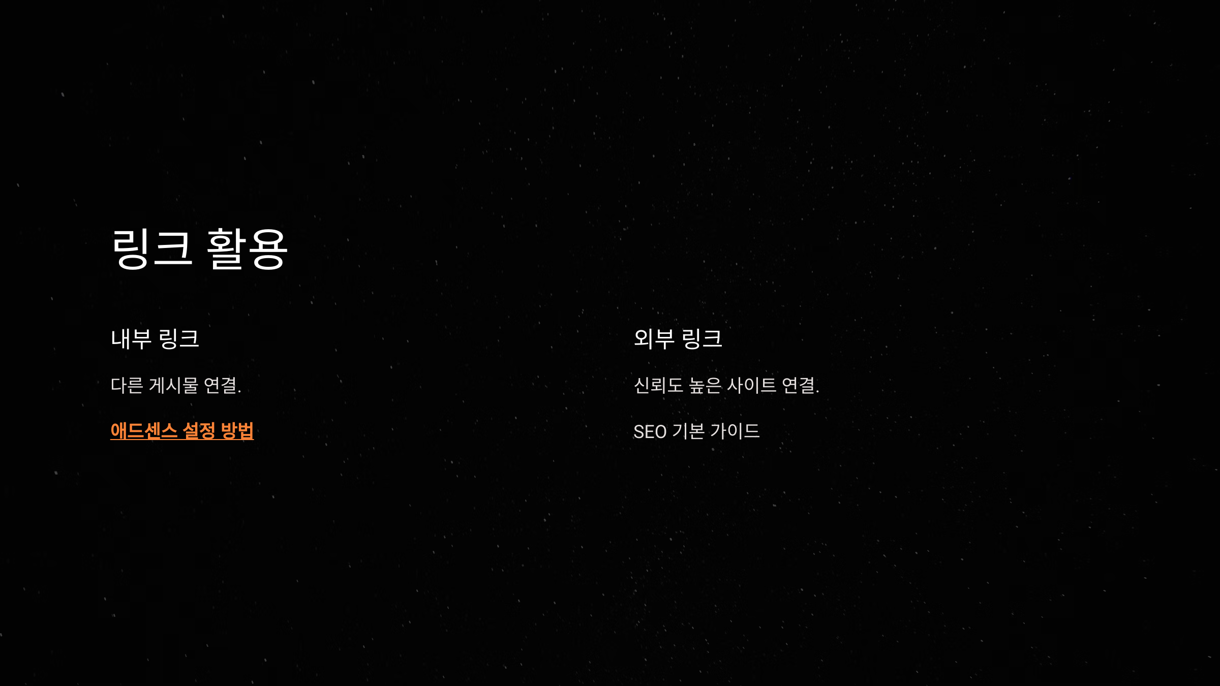 링크는 SEO에 중요한 요소 중 하나입니다. 내부 링크와 외부 링크를 적절히 활용하면 블로그의 신뢰도를 높이고, 검색 엔진이 더 많은 페이지를 크롤링할 수 있도록 도와줍니다.