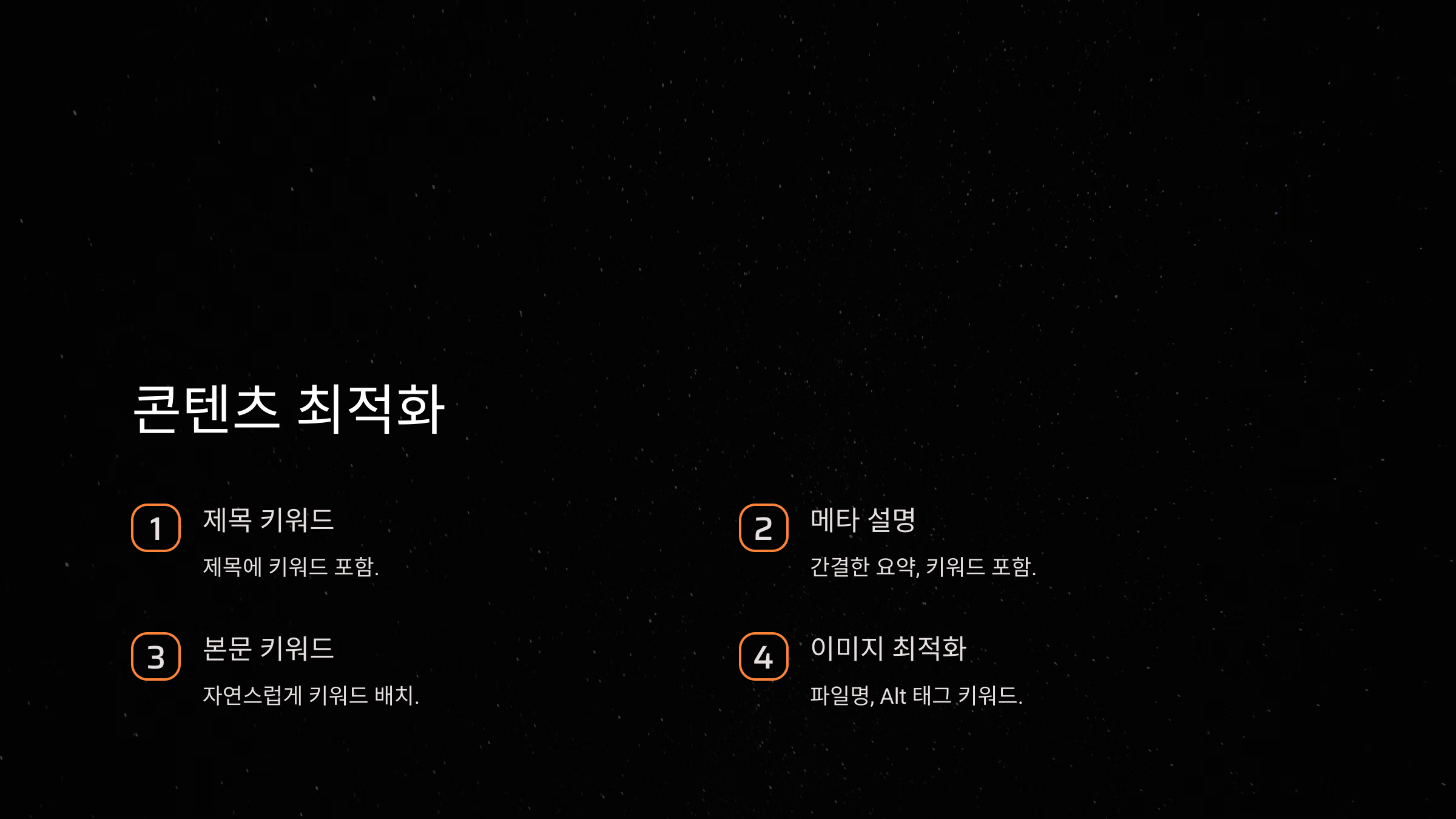 - 소제목(h2, h3 태그)에도 키워드를 포함하여 구조적으로 콘텐츠를 강화하세요.