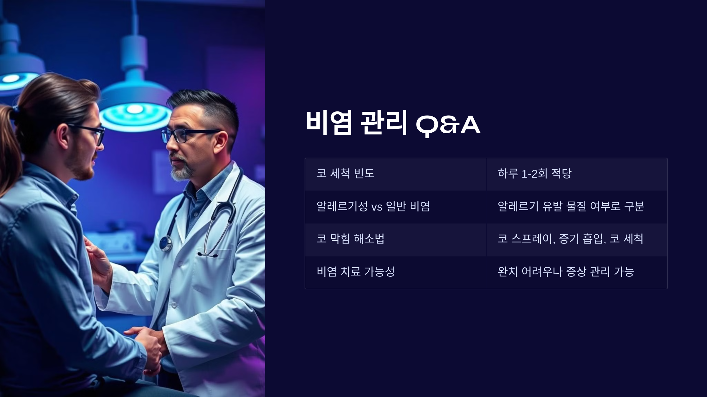 - 면역 요법: 알레르기 비염의 경우, 알레르기 유발 물질에 대한 면역 반응을 조절하는 면역 요법을 통해 증상 개선이 가능합니다.