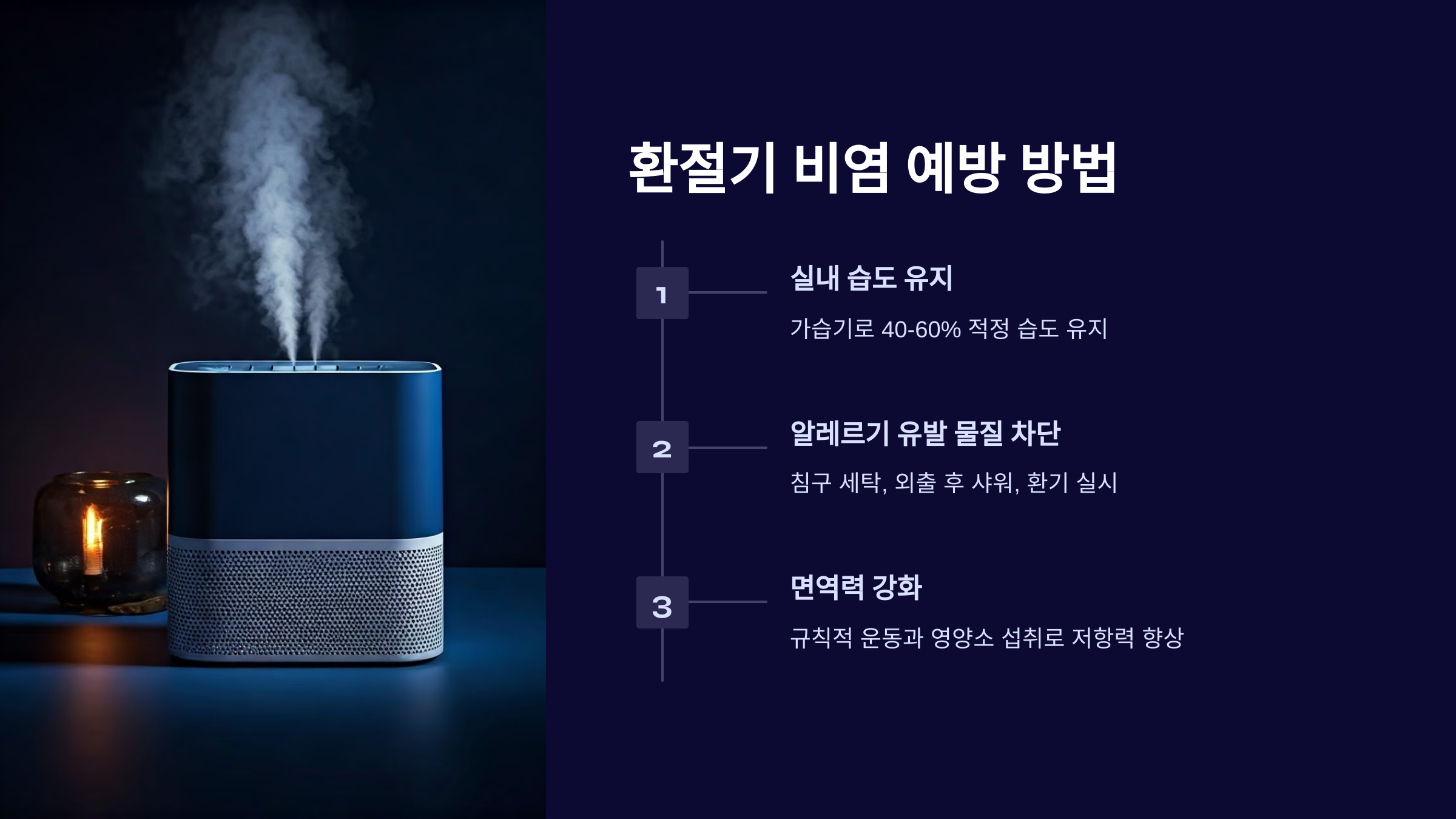 환절기 비염을 예방하기 위해서는 사전에 몇 가지 생활 습관을 개선하는 것이 중요합니다.