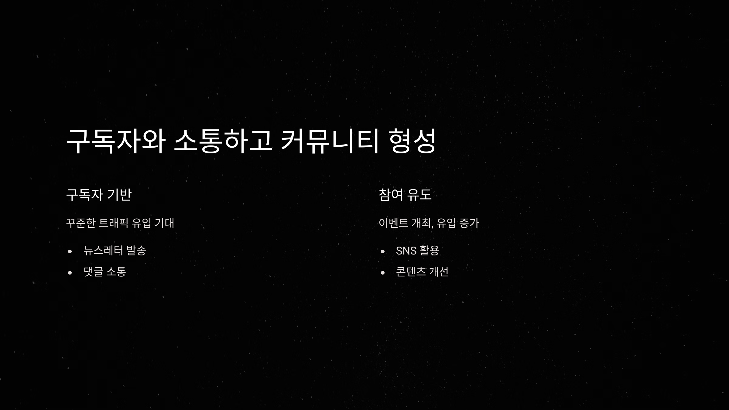 뉴스레터나 이벤트를 통해 독자 참여를 유도하고, 소셜미디어에서 활발히 활동하여 구독자를 늘려보세요.