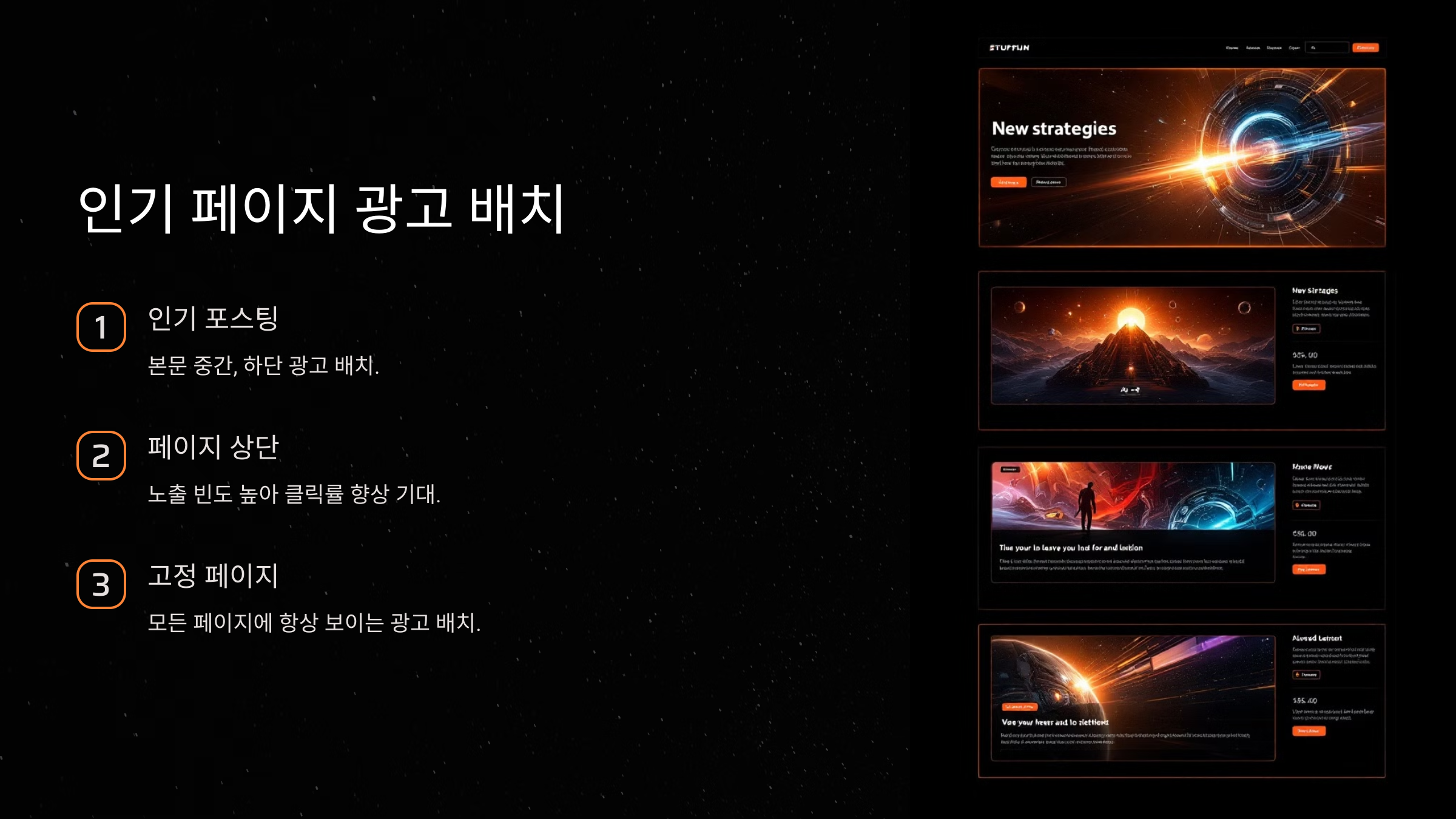 - 고정 페이지에 광고 배치: 블로그의 메뉴, 사이드바, 또는 고정 페이지처럼 모든 페이지에서 항상 보이는 광고를 배치하는 것도 효과적인 전략입니다. 트래픽이 많은 인기 페이지에서 광고 노출 빈도가 높아져 수익 증대에 기여할 수 있습니다.