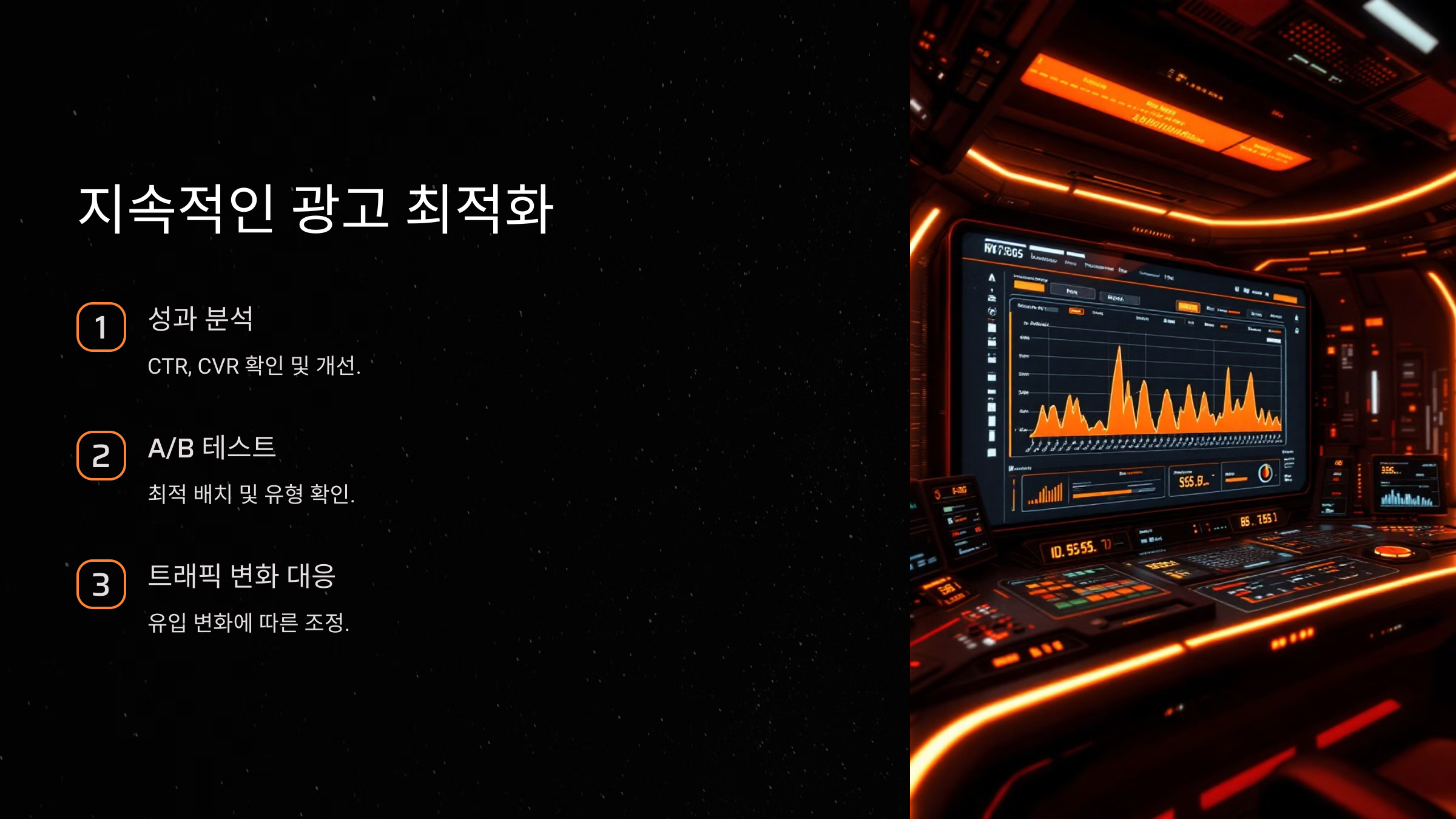 트래픽 분석 데이터를 기반으로 지속적으로 광고 성과를 분석하고 개선하는 것이 중요합니다. 클릭률(CTR)과 전환율(CVR)을 주기적으로 확인하고, 광고 배치나 유형을 테스트하세요.