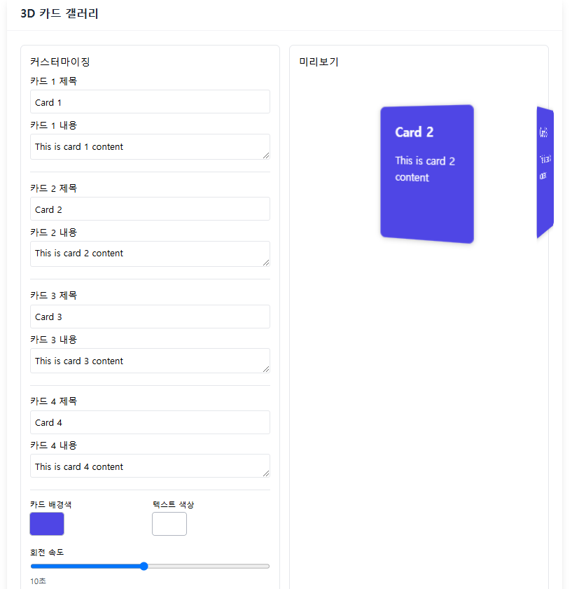 7️⃣ 🖼️ 3D 카드 갤러리(3D Card Gallery)