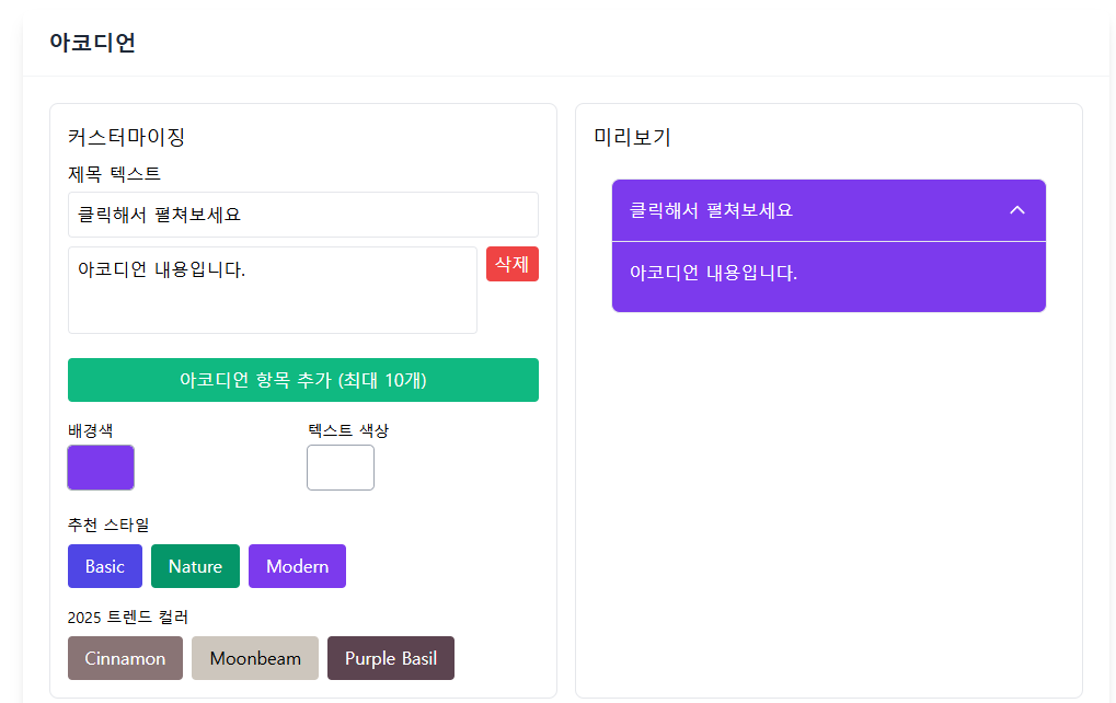 아코디언은 방문자가 원하는 정보를 클릭하여 확인할 수 있도록 돕는 인터랙티브한 UI 요소입니다.